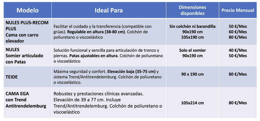 ALQUILER MENSUAL de CAMAS ARTICULADAS en MÁLAGA
